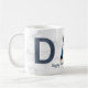 Aww, é o seu primeiro Dia de os pais!! Celebre este momento de precioso com esta caneca fofa dentro de um bebê com a letra A. Num fundo de mármore, a palavra "PAI" é soletrada em uma textura azul-aquática empoeirada, e a letra "A" é substituída pela fotografia do bebê. Mensagem personalizada abaixo na tipografia tendenciosa escrita à mão. Copyright Designs da Anastasia, todos os direitos reservados.