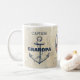 Perfeito para aquele avô especial em sua vida, esta caneca temática náutica apresenta uma âncora com “Capitão Avô” em cada lado, com uma foto emoldurada por corda no centro e uma mensagem feliz do Dia dos Pais de “tripulação do vovô”.