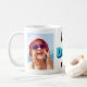 Celebre o melhor pai de todos os tempos com esta caneca personalizada com duas fotos e "PAI" escrito em tipografia azul e teal divertida.