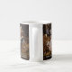 Uma caneca de casamento moderna com um design simples com seus nomes em um roteiro elegante manuscrito no canto superior esquerdo e seus detalhes de casamento em alinhamento direito no canto inferior direito, sobre sua foto favorita. Essas canecas bonitas fazem favores de casamento úteis ou um presente de excelente para um casal recém-casado.
