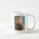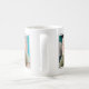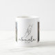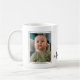 Uma linda caneca de café da vovó de família com desenho de linha de uma criança segurando a mão de suas avós, duas fotos para você substituir pela sua, o título 'ABUELA' em uma fonte moderna, e o ano em que ela se tornou gramática.