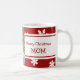 Feliz Natal Mãe personalizou a caneca de fotos em um padrão na moda vermelho e branco de floco de neve com texto e foto personalizáveis, perfeito como presente de Natal.
