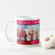 Esta caneca de férias de modelo de foto fácil de usar tem 5 pontos de fotos para você adicionar suas próprias fotos da família. O design do lenço vermelho que faz fronteira oferece o espaço do "Feliz Natal". Além disso, personalize esta caneca para qualquer um ou vá embora como é para a vovó. Os nomes de todos nas fotos do lenço inferior podem ser personalizados para um único olhar moderno.