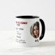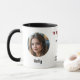 Caneca de escritório com uma foto (à esquerda e à direita da caneca) e a descrição de como gostaria de seu café. Você pode escolher uma cor diferente para cada membro da equipe, se quiser.