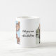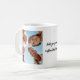 Faça você ter uma caneca de café fotográfica com 2 de suas fotos favoritas e texto personalizado em uma fonte com estilo caligrafia.