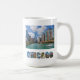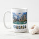 Mostre seu amor pela cidade de Chicago, Illinois com esta legal caneca de café com uma foto viagem do Chicago River e a linha do horizonte da cidade! A colagem colorida na palavra "Chicago" apresenta fotos adicionais da cidade, incluindo Marinho Pier e outras visões de Chicago do centro!