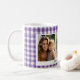 Design de padrão de 3 fotos, Gingham roxo - 6 cores. Celebre momentos do dia a dia com esta charmosa caneca personalizada com um padrão de gingham de eterno disponível em 6 cores bonitas. Projetada para guardar três das suas fotos favoritas, esta caneca é perfeita para mostrar memórias familiares, instantâneos de casamento ou marcos especiais. Quer você goste do café da manhã, do chá da tarde, ou do cacau quente, esta caneca personalizada adiciona um toque alegre e aconchegante à sua rotina. Também faz um presente pensativo para casamentos, aniversários, aniversários, aniversários, ou como guardião para os entes queridos. Feito com cuidado e feito para durar, esta caneca de fotos gingham combina encanto rústico com personalização moderna. Escolha sua cor favorita, carregue suas fotos e crie uma caneca exclusiva que traz alegria com cada gole.