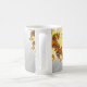 Esta caneca personalizada apresenta um fractal espiral colorido em cinzas amarela, laranja e clara com nome personalizável em uma fonte de script de cinza.
