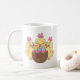 Adicione um traço de alegria Páscoa à sua manhã com nossa adorável caneca de café com três pintinhos bonitinhos ao redor de um grande ovo de Páscoa.