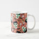 Comece suas manhãs de época assustadora com um gole muito divertido! Esta caneca de café do Dia das Bruxas apresenta um padrão divertido de crânio de monstro Frankenstein, guloseimas, teias de sabugo e sotaques de esqueleto sobre um fundo de terracota. Um presente perfeito para amantes do Dia das Bruxas, aniversários de outubro, ou qualquer um que desfrute de um charme assustador com seu café, chá ou cacau.