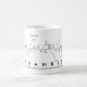 Frankie soletrou em aminoácidos como F R A N K I E (Fenilalanina Arginina Alanina Asparagina Lysina Isoleucina Ácido glutâmico) numa caneca para o cientista em si. Não consegues encontrar o que queres?