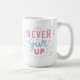 Comece seu dia com positividade e motivação! Esta caneca inspiradora apresenta a frase elevadora "Nunca Desistir" em letras coloridas e ousadas com sotaques decorativos lúdicos. Perfeito para café, chá, ou sua bebida favorita, é um lembrete diário para se manter forte e continuar avançando. Feita de cerâmica durável com acabamento brilhante, essa caneca é segura tanto em micro-ondas quanto em lavadora de louça, fazer tão prática quanto inspiradora. Um presente pensativo para amigos, família, colegas de trabalho, ou qualquer pessoa que precise de um pouco de encorajamento com o seu peito matinal.