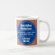 Estilo Comemorativo Divertido Presente em Parede na forma de uma caneca de café. Placa azul e branca numa parede de tijolos. Edite a design para alterar o texto de acordo com o destinatário do presente. Design está em ambos os lados.