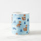 Charming red foxes in scarves wander a snowy blue forest of evergreens and mountains. Whimsical and wintery, perfect for cozy style.