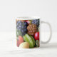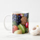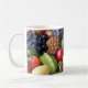 Fotografia de diversas frutas deliciosas e coloridas impressas em ambos os lados da caneca.