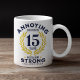 Diseño divertido de taza para matrimonios o parejas que cumplen Orgullosamente 15 años Juntos y aun esta fuerte la relacion entre los dos!, No lo piense y regale a su pareja este lindo modelo para Parejas con frase divertida. El modelo se puede personalizar con los nombres de esposo y esposa.