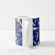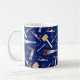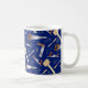 Uma caneca engraçada para entusiastas do DIY, carpinteiros e homens de mão. Azul escuro com ferramentas de carpintaria.