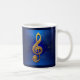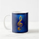 O G ou Treble se decole em ouro, com aspersão de pequenas notas ao seu redor, imagem criada com inteligência artificial. Expresse a sua essência musical sempre que bebe o seu cuppa desta caneca.
