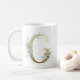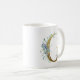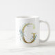 Caneca De Café G ouro inicial com folhagem floral azul