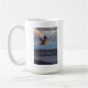 O regular da praia do por do sol voa ao longo da linha costeira no por do sol.