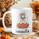 Cale-se com sua bebida quente favorita e esta caneca personalizada adorável! A design apresenta um charmoso desenho animado, com um arco doce de gingham, sentado alegremente dentro a abóbora, rodeado de corações, faíscas e folhas coloridas de outono. Esta caneca é a maneira perfeita de adicionar um toque de cudez e alegria de outono ao seu café da manhã ou ao chá da noite. Personalize-o com um nome (por exemplo, "Samantha") para torná-lo uma peça única! É um acessório encantador para quem ama animais de fazenda e a temporada de outono.