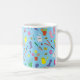 Esta caneca legal tem um tema de jardinagem e apresenta um padrão de desenho animado de ferramentas e itens de jardinagem como latas de água, lagos, botas de wellington, pacotes de sementes e flores.