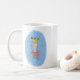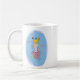 Mädchen mit Krone sitzt auf Wolle. In der Hand hält sie eine Häkelnadel.