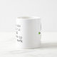 Uma bonitinha com uma caneca de café verde, cabelo e colar de pérolas num fundo branco. A citação é editável.