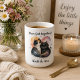 Esta adorável caneca temática de gato é o presente perfeito para a pessoa ou casal favorito. Personalize com os nomes desejados. Você também pode alterar a frase para atender à sua preferência.