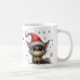 Este gato lindo de olhos grandes vestindo um chapéu de Papai Noel faz desta caneca um presente perfeito para a senhora de gatos ou a cara de gatos em sua vida. Feliz sentimento de Natal pode ser mudado. Imagem assistida por IA adquirida com uso comercial. Trabalho de arte: RedHeronLighthouse