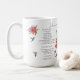 Bonito caneca com receita de bolo de beija-flor e beija-flores de Anna e Broad Bengbird. Bolo, flores e imagens de aves por C. Dobbins.