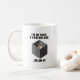 O gato preto e branco levantou em uma caixa com provérbio científico engraçado.