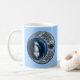Um gato branco em um medalhão celta da lua do nó no azul e nas cinzas de prata.