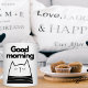 Adorável caneca de café da Gata de 15 onças com ilustração de gato lúdica e inscrição moderna de "Bom Dia". Disponível nos tamanhos de 15 e 11 onças, em micro-ondas e lavadora de louça.