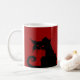 Silhueta de um gato preto menacing dos desenhos animados com olhos vermelhos.
