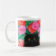 Caneca De Café Gato preto bonito com flores brilhantes