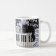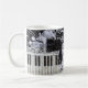 Awwww! Este gato não olha muito orgulhoso dsi mesmo? Como apenas terminou praticar. Este gato preto está sentando-se sobre um teclado com notas da música toda ao redor. Isto é de uma obra de arte original pelo artista Loretta Alvarado da fibra.