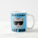 Pai de tomate mais legal do mundo. Óculos de sol. Este belo design de caneca de café mostra uma cinza de gato com óculos de sol e as palavras o PAI CAT mais legal do mundo. A imagem fica do lado esquerdo e direito. A cor de fundo é azul-céu.