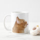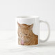 conversa alaranjada da língua do fazer do gato de gato malhado em uma caneca de café/copo