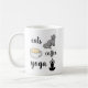 Uma adorável caneca de café com as palavras Cats Coffee Yoga com desenhos bonitos de cada um. Faz o presente perfeito para uma mulher que adora café, ioga e seu gato.