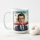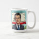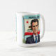 Gavin Newsom para presidente em 2028. Uma caneca de café política patriótica, vermelha, branca e azul com uma caricatura de desenho animado de Gavin.