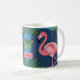 Flamingo geométrico divertido com folhas monstera e cores vibrantes do verão para as vibrações tropicais