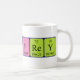 Geoffrey escreveu como Ge O F Re Y (Germanium Oxygen Fluorine Rhenium Yttrium) em uma caneca para o cientista em você.