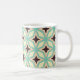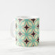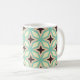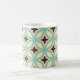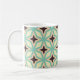 Geometric pattern with alternating dark star shapes surrounded by layered hexagonal outlines in teal, cream, and beige, creating a symmetrical, retro vibe.