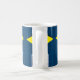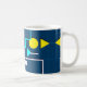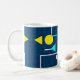 Bold geometric mug design with a deep blue background, bright yellow circle, triangle shapes and a vivid green arrow, arranged like a retro tech interface or minimalist control panel. Clean lines, sharp angles and strong color blocking give this modern abstract artwork a futuristic yet vintage digital vibe that graphic design lovers and gamers will instantly notice and enjoy.