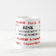 Excesso de termos de risco, linguagem e afirmações cotidianas que irritarão qualquer profissional de Gerenciamento de Risco, este lendário e único design de caneca de café certamente adiciona algum humor ao escritório de qualquer Gerente de Risco - no trabalho ou em casa!
