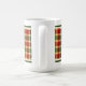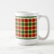 Uma caneca de café com tartan para Clan Gibbs e Gibson. Padrão de xadrez escocesa vermelho-claro, amarelo e verde de 1994, com sotaques azuis e brancos.