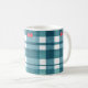 Uma linda caneca de gingham verde para presentes de natal. Caneca de gingham verde. Caneca de gingham verde-branca para férias