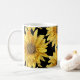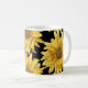 Adicione um pouco de cor amarela alegre à decoração da sua cozinha com canecas de café impressas com girassóis. Esta caneca apresenta uma flor amarela dourada em um fundo preto contrastante. Compre esta caneca para você ou dê um conjunto de canecas de café florais como presente de casa nova, casamento ou aniversário.