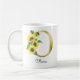 Caneca De Café Girassol Floral Inicial O Monogramado Dourado